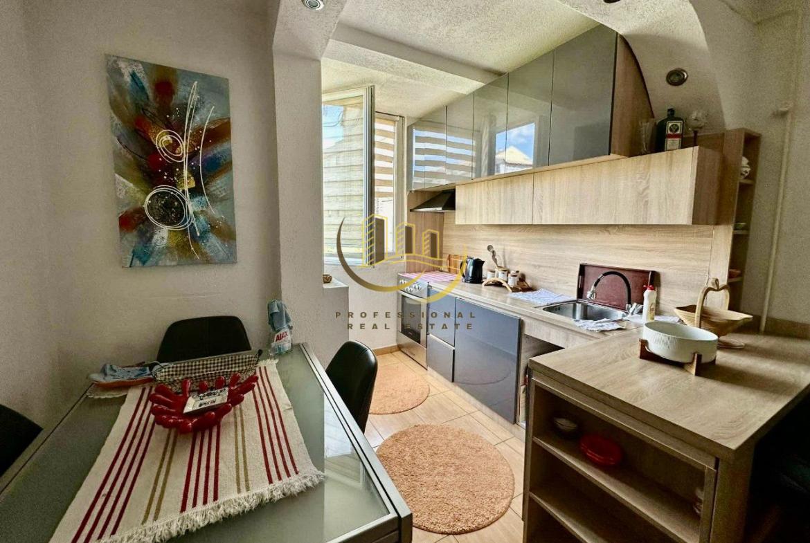 Banesë e mobiluar plotësisht me kushte shumë të mira banimi, në katin e 4-të pa lift, me ngrohje termokos. 80m2, 2 dhoma gjumi, ballkon