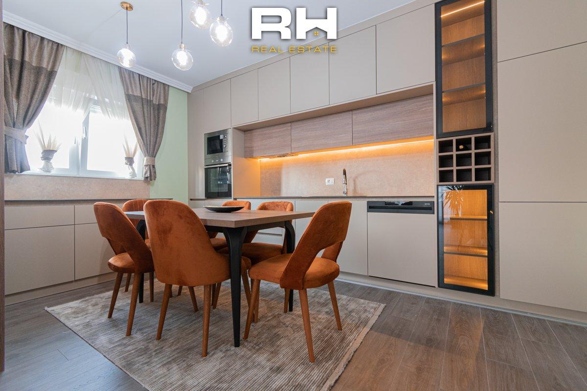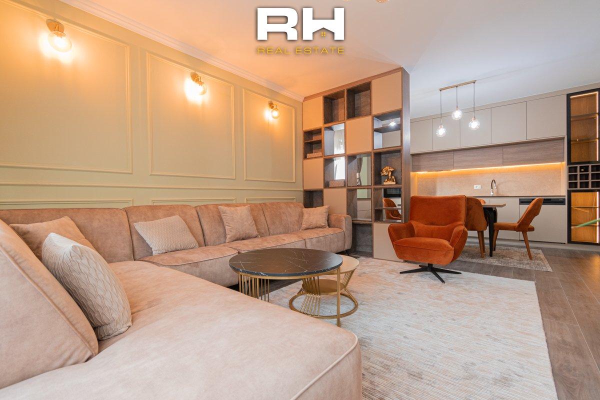 Banesa moderne, tërësisht e re dhe e mobiluar në mënyrë elegante, ndodhet në objektin e ndërtuar nga Rukolli. Sipërfaqe: 110m²
