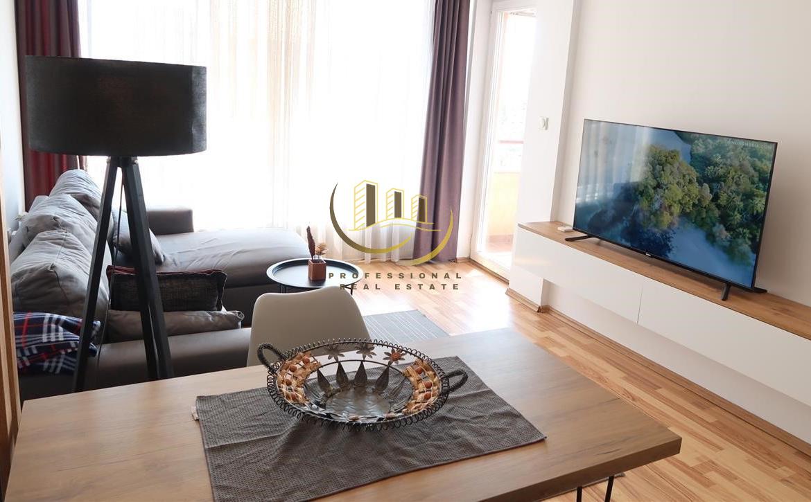 Banesë 60m2, kati 3 me lift, ngrohje qendrore me rrymë/klimë, kushte shumë të mira banimi, e mobiluar.