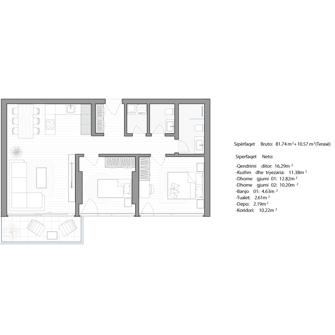 Çdo apartament është projektuar me kujdes për të ofruar rehati, funksionalitet dhe standard të lartë jetese.