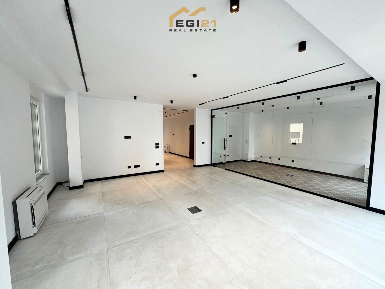 - Hapësirë funksionale – Përfshin hapësirë pritjeje, zonë të madhe pune, sallë takimesh, tri zyra të veçanta, kuzhinë/depo, dy banjo dhe dy ballkone.