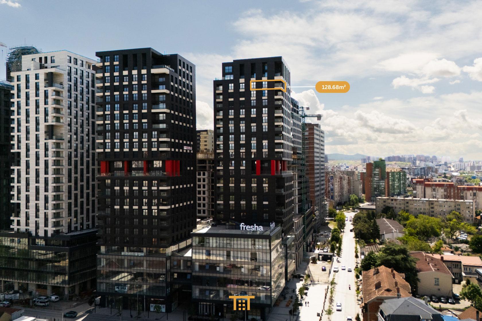 Me një sipërfaqe prej 128.68m², kjo pronë është ideale si për banim luksoz, ashtu edhe për zyra profesionale, duke ofruar komoditet maksimal, ndriçim të bollshëm natyral dhe pamje panoramike unike të Prishtinës.