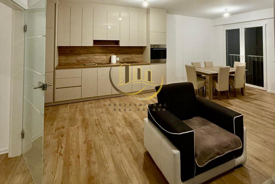 Banesë moderne me kushte shumë të mira banimi, tërësisht e mobiluar dhe me sistem të ngrohjes qendrore me rrymë. 98m2, 2 dhoma gjumi, 2 banjo
