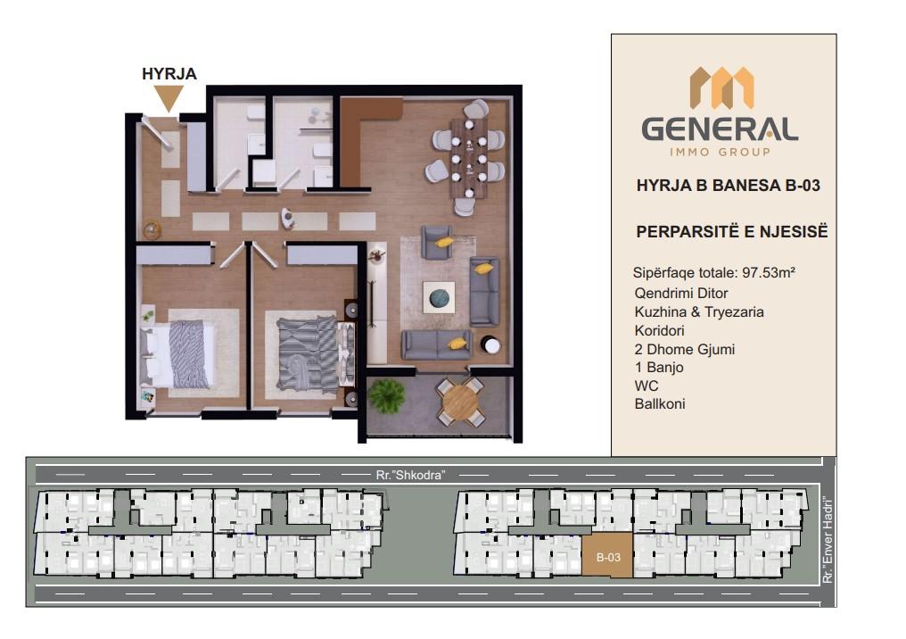Banesa në Shitje –Objekti III, HYRJA B- BANESA B-02 | General Immo Group