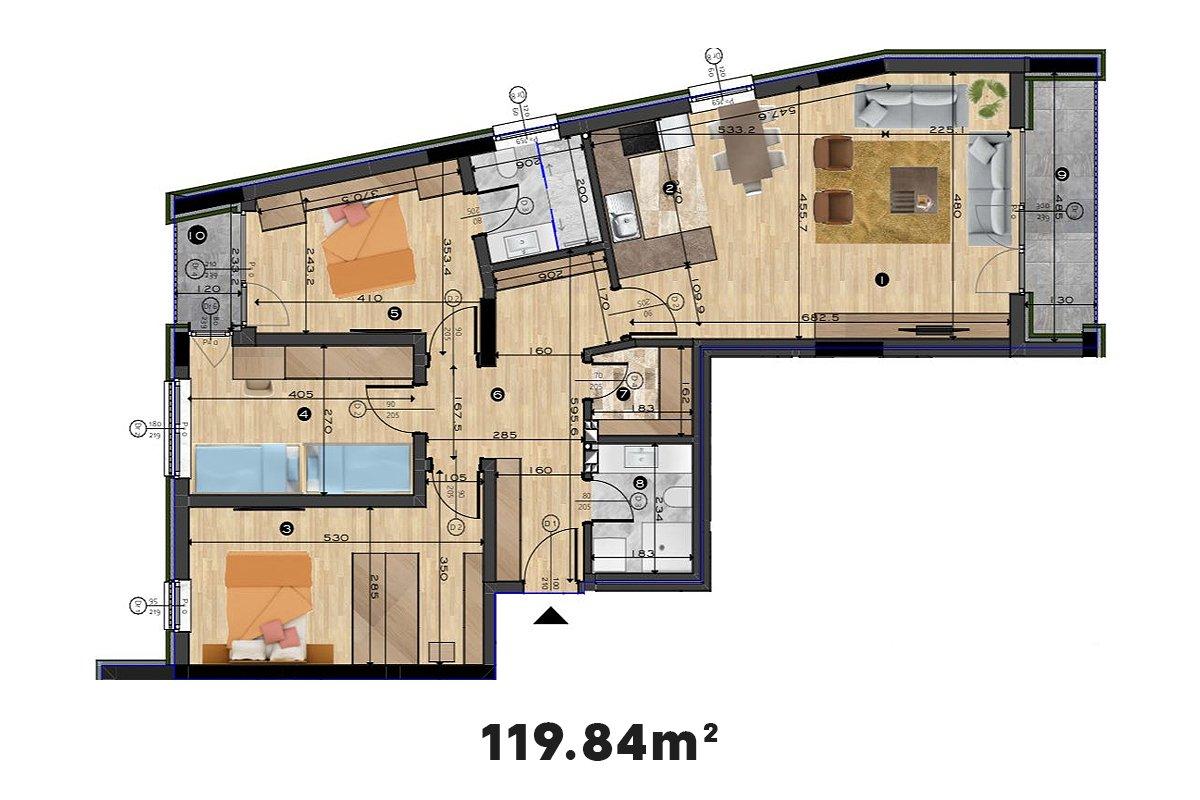 Banesa me sipërfaqe 119.84m² te Prishtina e Re