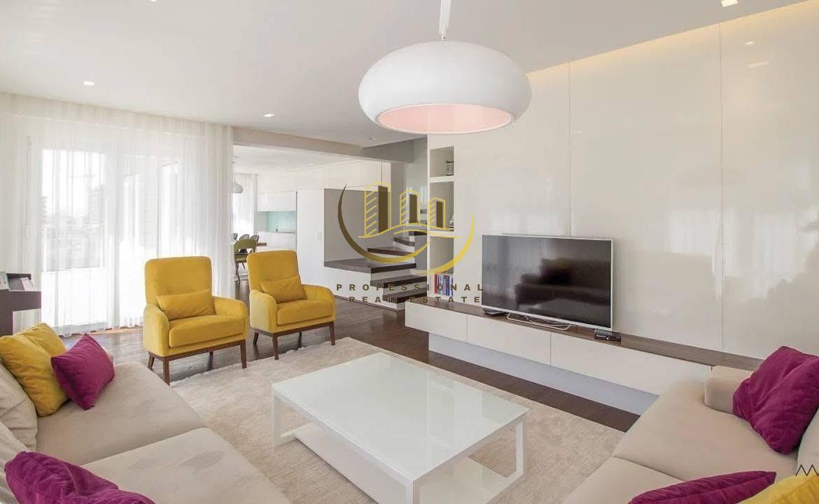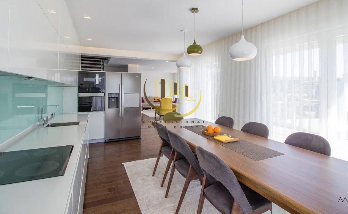 Banesë me kushte shumë të mira banimi, e mobiluar në tërësi, në katin e 4-të me lift funksional, me sipërfaqe prej 161m².