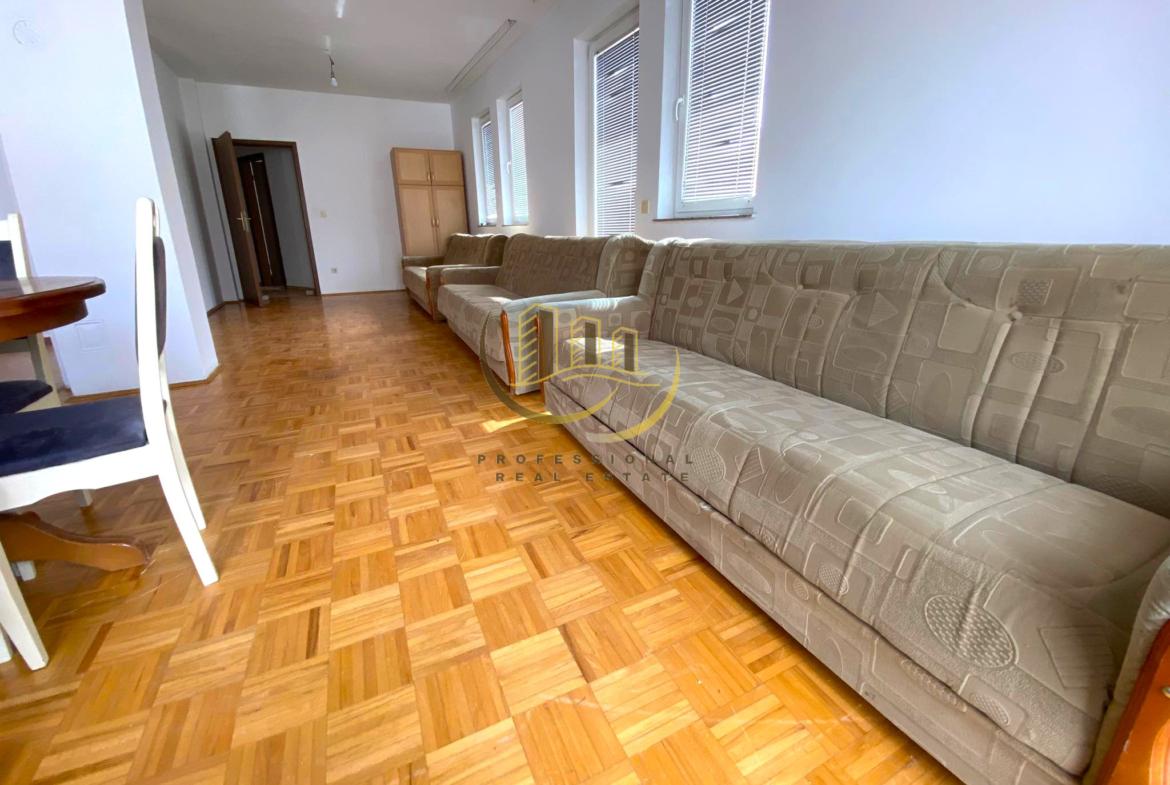 Banesë 80 m2 në katin e 6-të me lift, ngrohje qendrore me termokos dhe kushte shumë të mira banimi, e mobiluar plotësisht. Ballkon 100m2