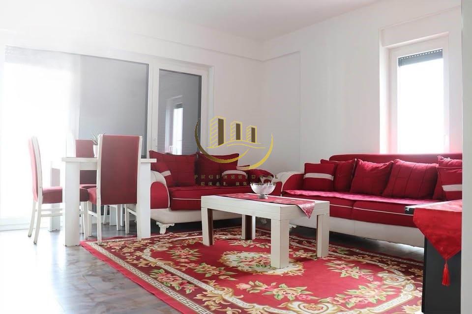 Banesë e mobiluar plotësisht me kushte shumë të mira banimi, në katin e 8-të me lift dhe ngrohje qendrore. 85m², 2 dhoma gjumi, ballkon