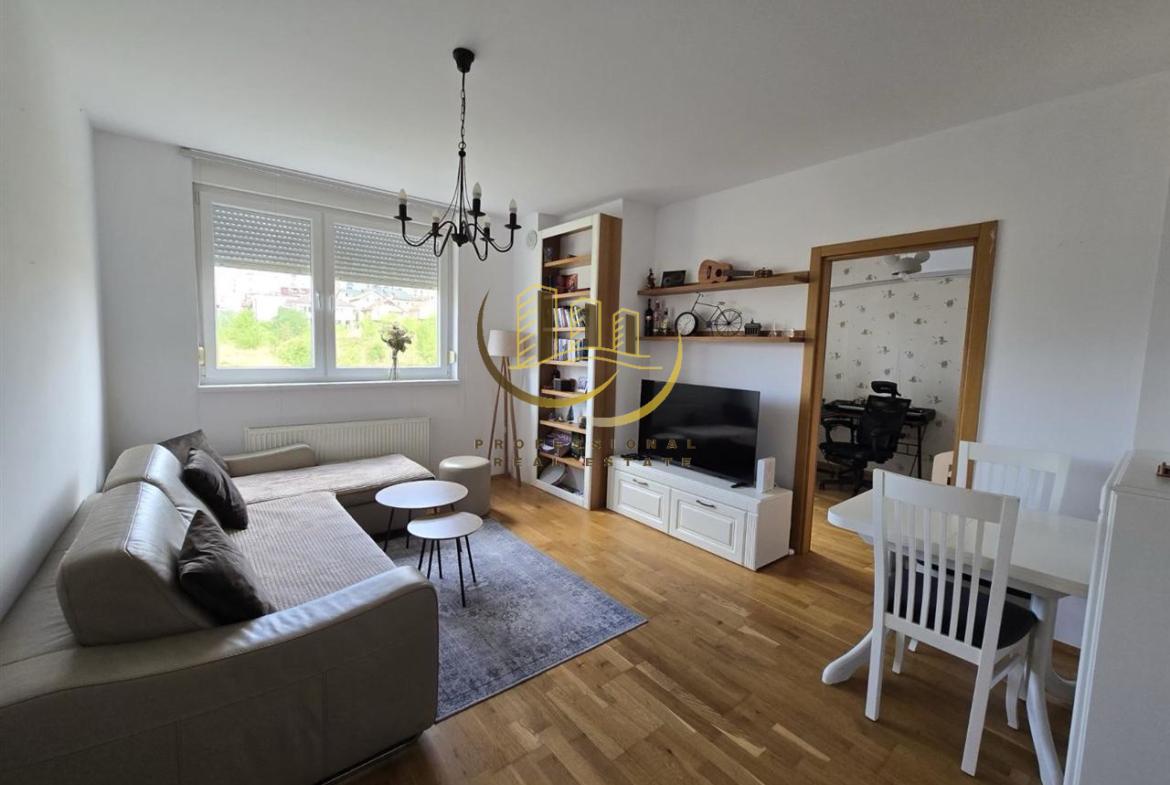 Banesë me kushte të mira banimi, tërësisht e mobiluar dhe me sistem të ngrohjes qendrore. 80m2, kati 1