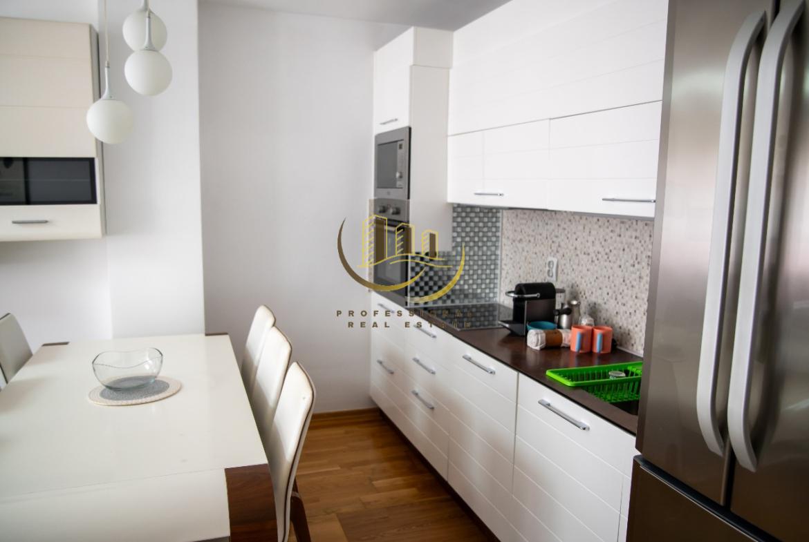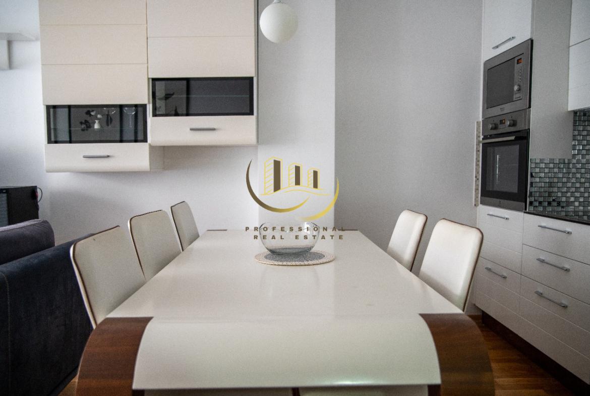 Banesë e mobiluar në tërësi me kushte shumë të mira banimi, me sistem të ngrohjes qendrore me rrymë. 80 m2, kati 1