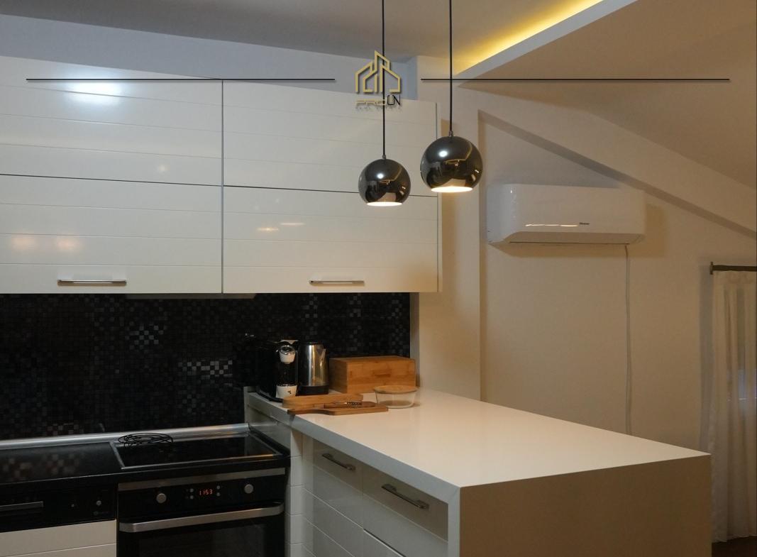 Renditja: sallon-kuzhinë, tri dhoma gjumi, dy koridora, dy banjo (njëra me xhakuzi) dhe ballkon.