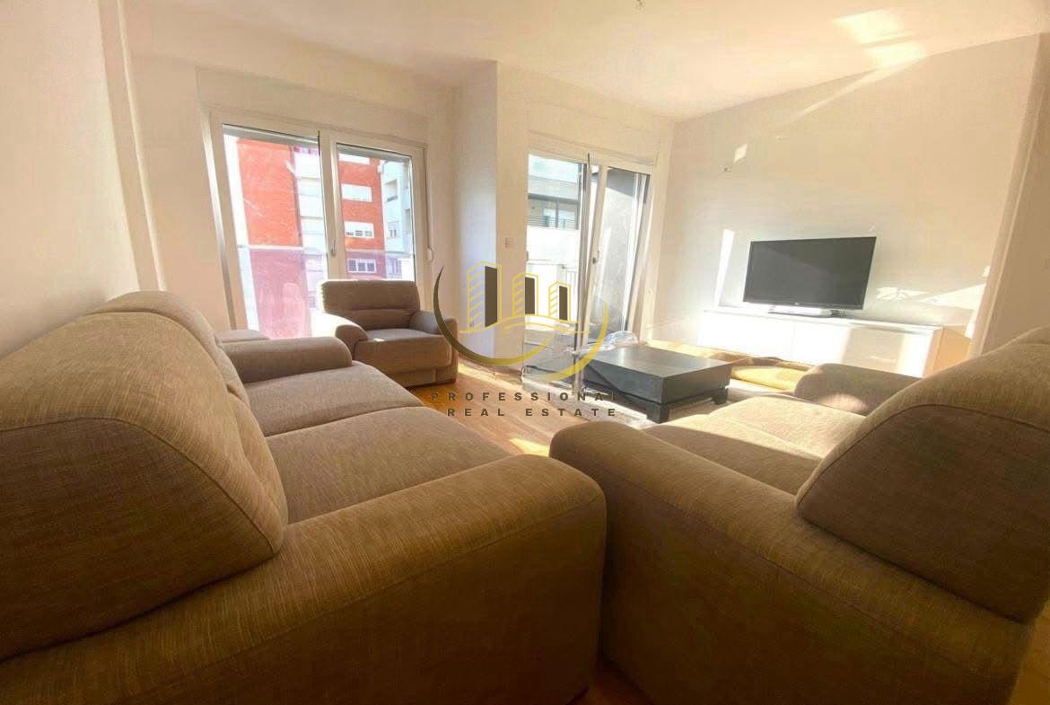 Banesë moderne me sipërfaqe prej 85m2 në katin e 4-të me lift, sistem të ngrohjes qendrore dhe kushte shumë të mira banimi. E mobiluar plotësisht.