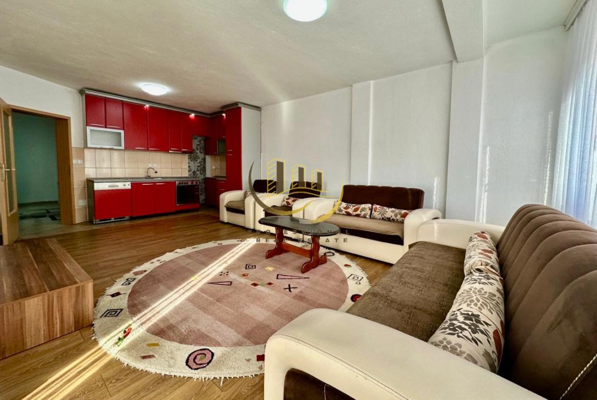 Banesë e mobiluar në tërësi me kushte shumë të mira banimi, 98 m2 në katin e 2-të, pa lift. Sistem ngrohje qendrore, 2 dhoma gjumi, ballkon