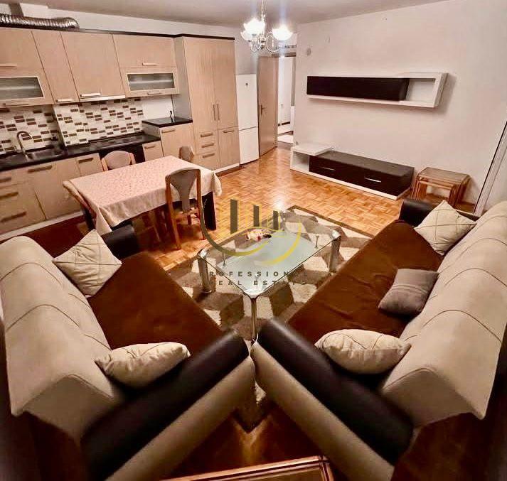 Banesë 80m² në katin e 5-të me lift, ngrohje qendrore me rrymë dhe kushte shumë të mira banimi. E mobiluar në tërësi