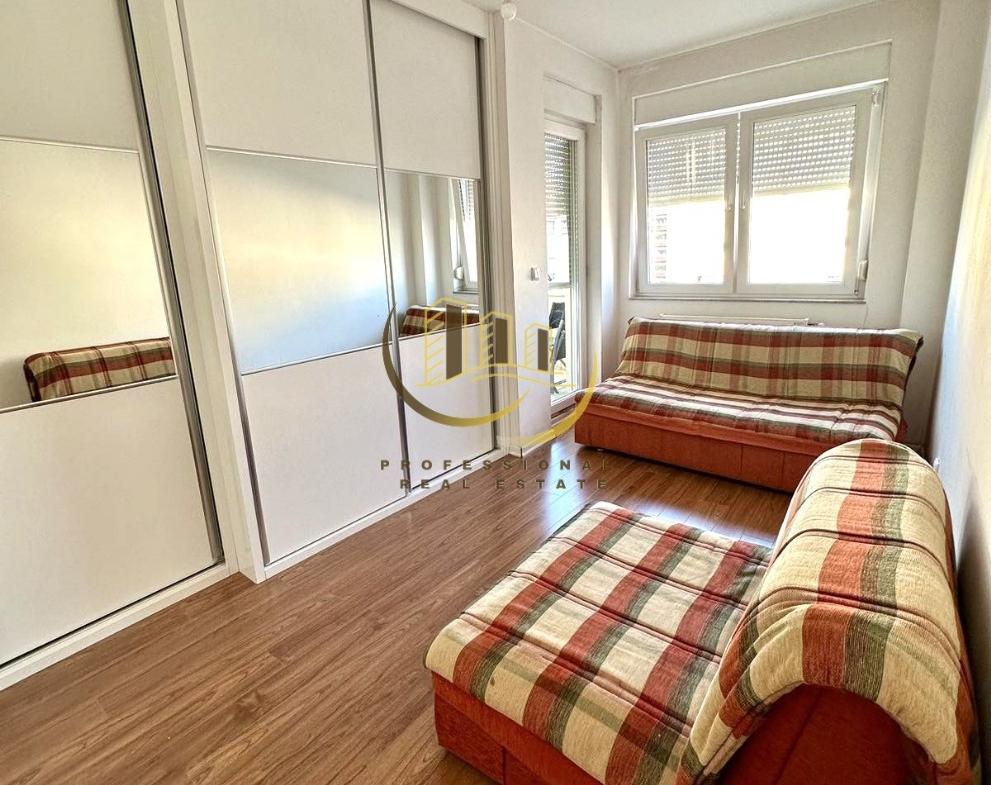 Banesë e mobiluar në tërësi me kushte shumë të mira banimi, ndodhet në katin e 8-të me lift. 80m2, 2 dhoma gjumi, parking
