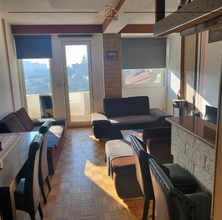 Banesa ndodhet në katin e 4-të (pa lift), me sipërfaqe 76.7m². Është e mobiluar dhe e organizuar me të gjitha pajisjet e nevojshme për banim, në një lokacion shumë të përshtatshëm me çasje të shpejtë në të gjitha shërbimet e nevojshme.
