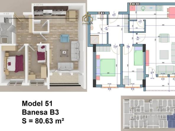 - Sipërfaqe: 80.63m², kati i 6-të