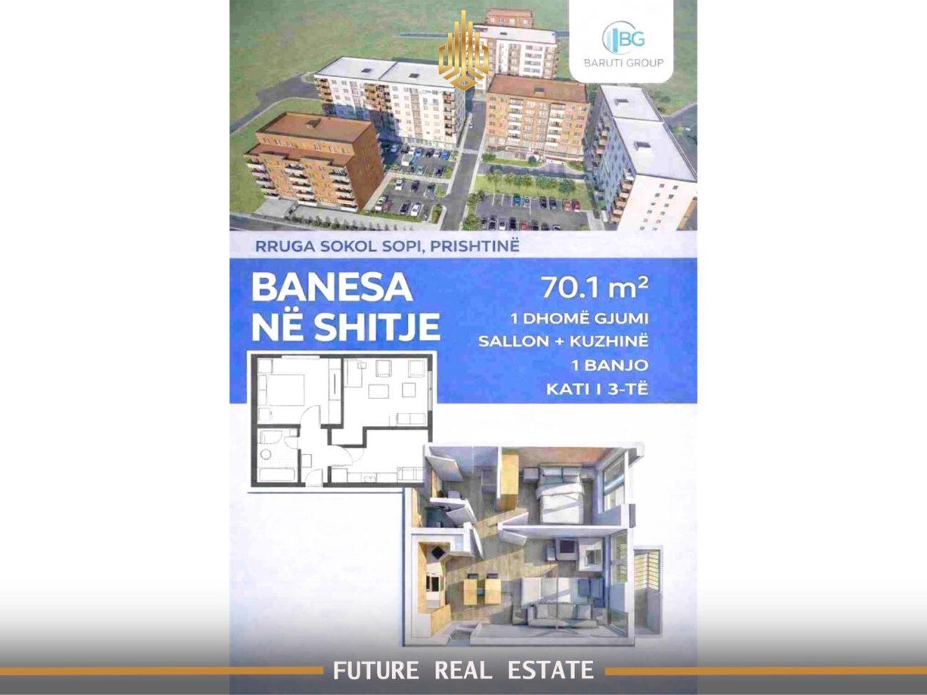 Banesë për shitje me sipërfaqe 70.1 m2 në lagjen Mati 1, Prishtinë. Çmimi: 1,050 € / m2
