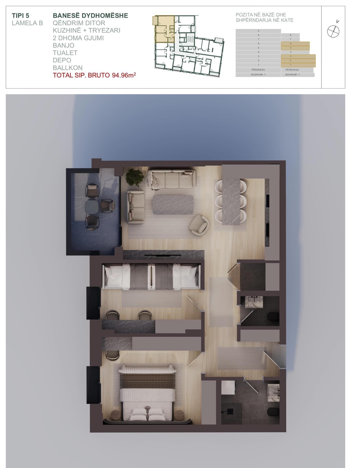 BESOR APARTEMENTS, Banese ne shitje Tip 5, Lamela B, 94.96m2