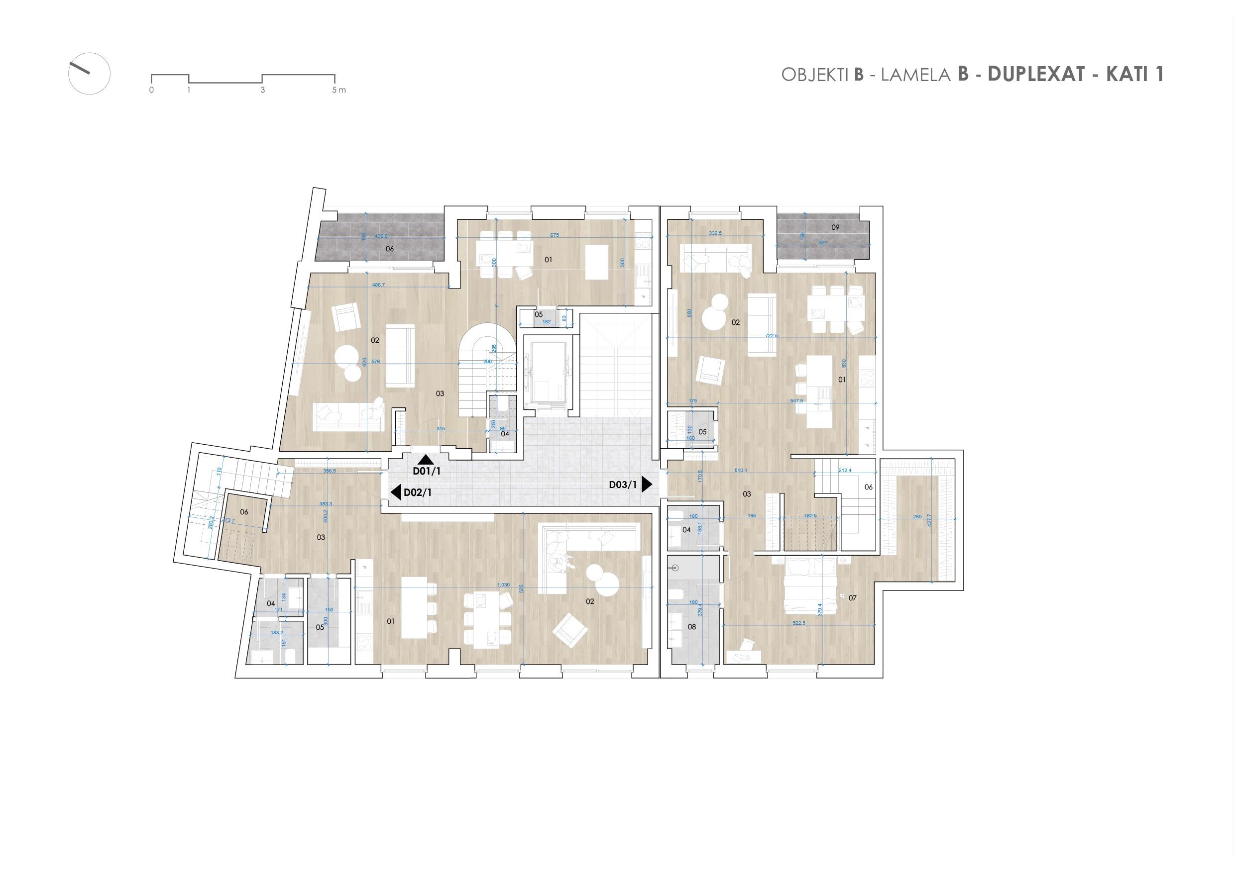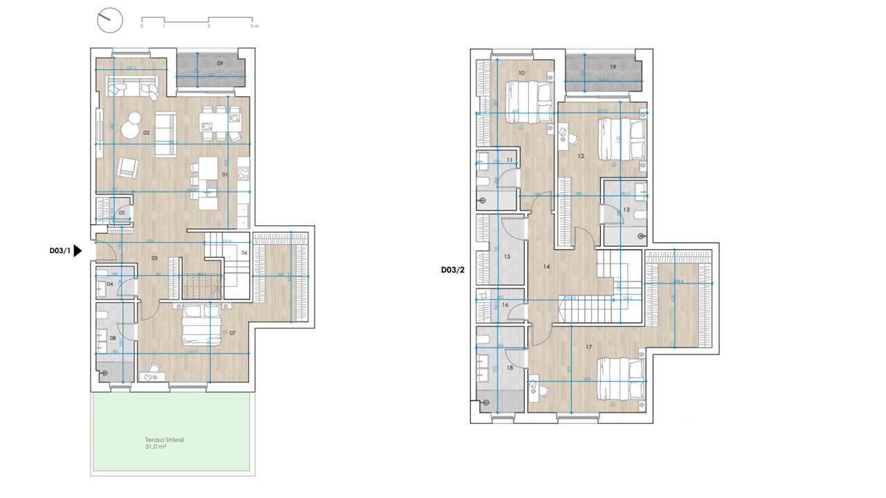 Detajet e banesës – Objekti B, Lamela B, Duplex  D03 ,Kati 1 dhe 2,  Siperfaqja totale 286.81 m2