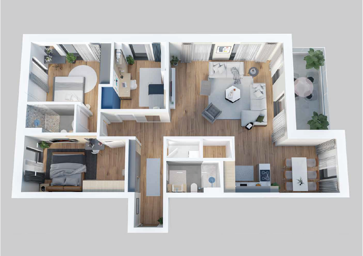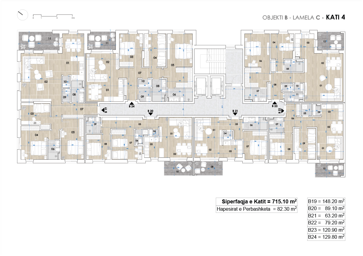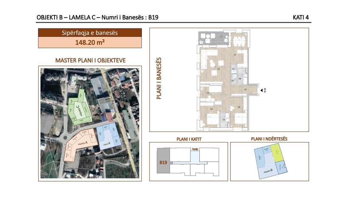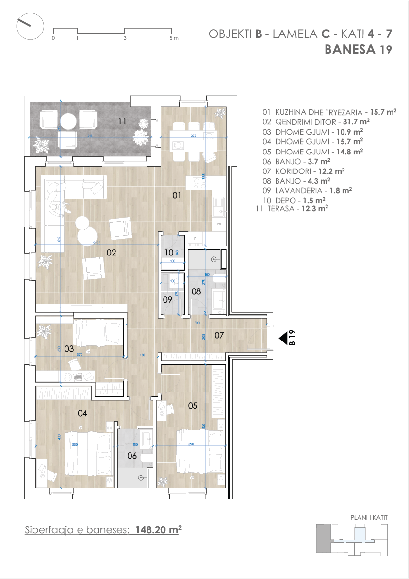 Detajet e banesës – Objekti B, Lamela C, Kati 4-7, Banesa B19, Siperfaqja totale 14.20 m2