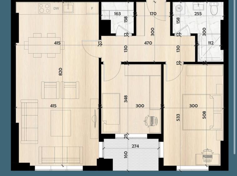 Banesa në zonën e ndërtimit të ri, me sipërfaqe 93.66 m², kati i 7-të dhe pamje nga parku i Kompleksit.