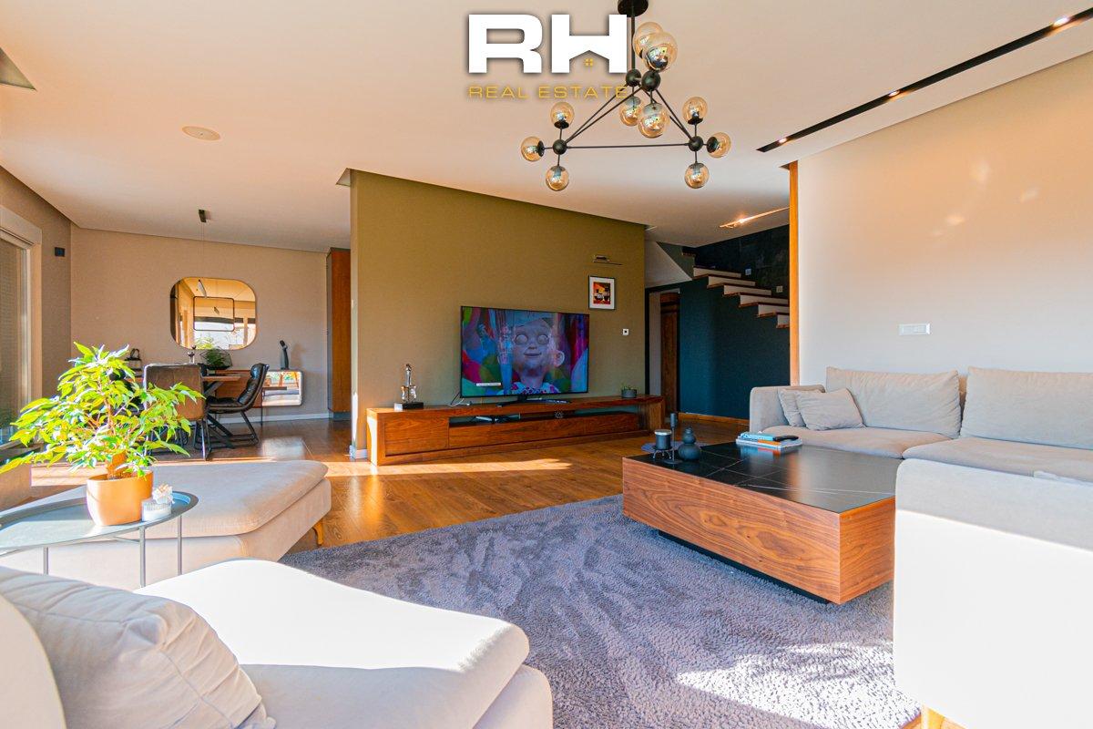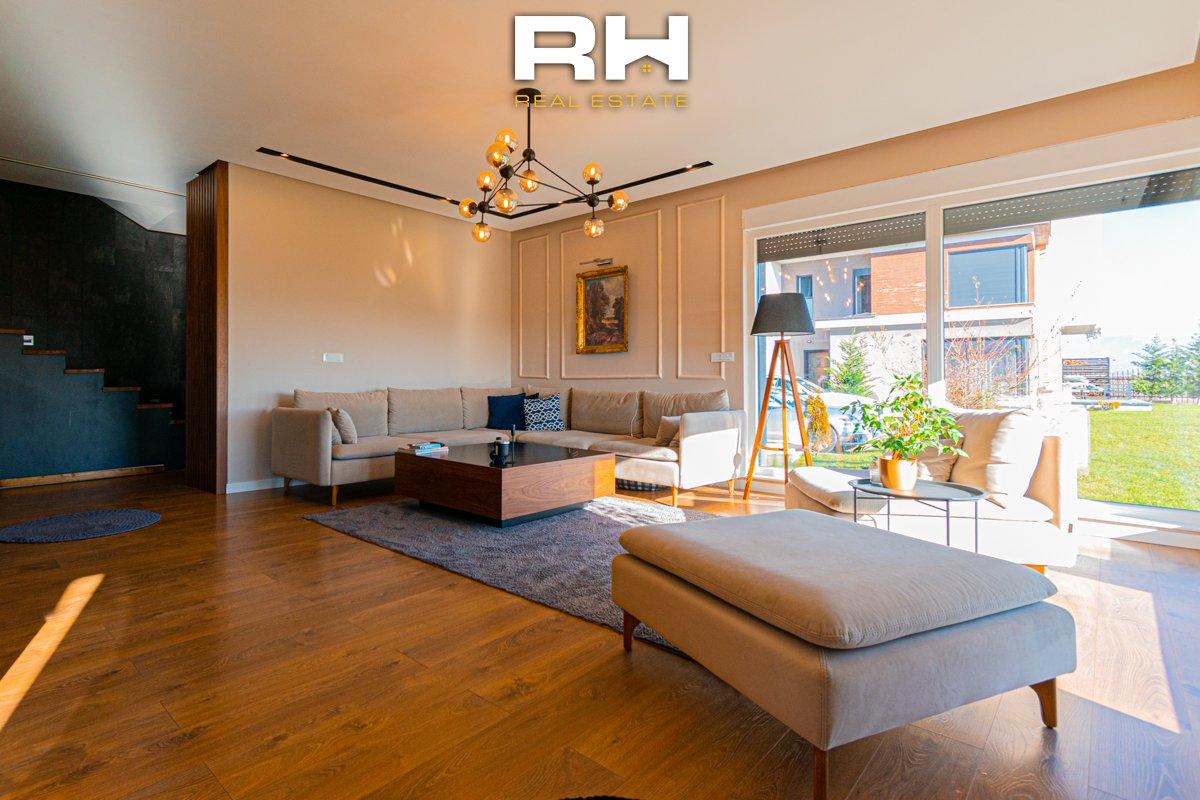 Shtëpi e re, e mobiluar plotësisht me mobile të kualitetit të lartë dhe ndriçim të bollshëm gjatë gjithë ditës. Sipërfaqe totale: 320m² (260m² banim + 60m² terasë)