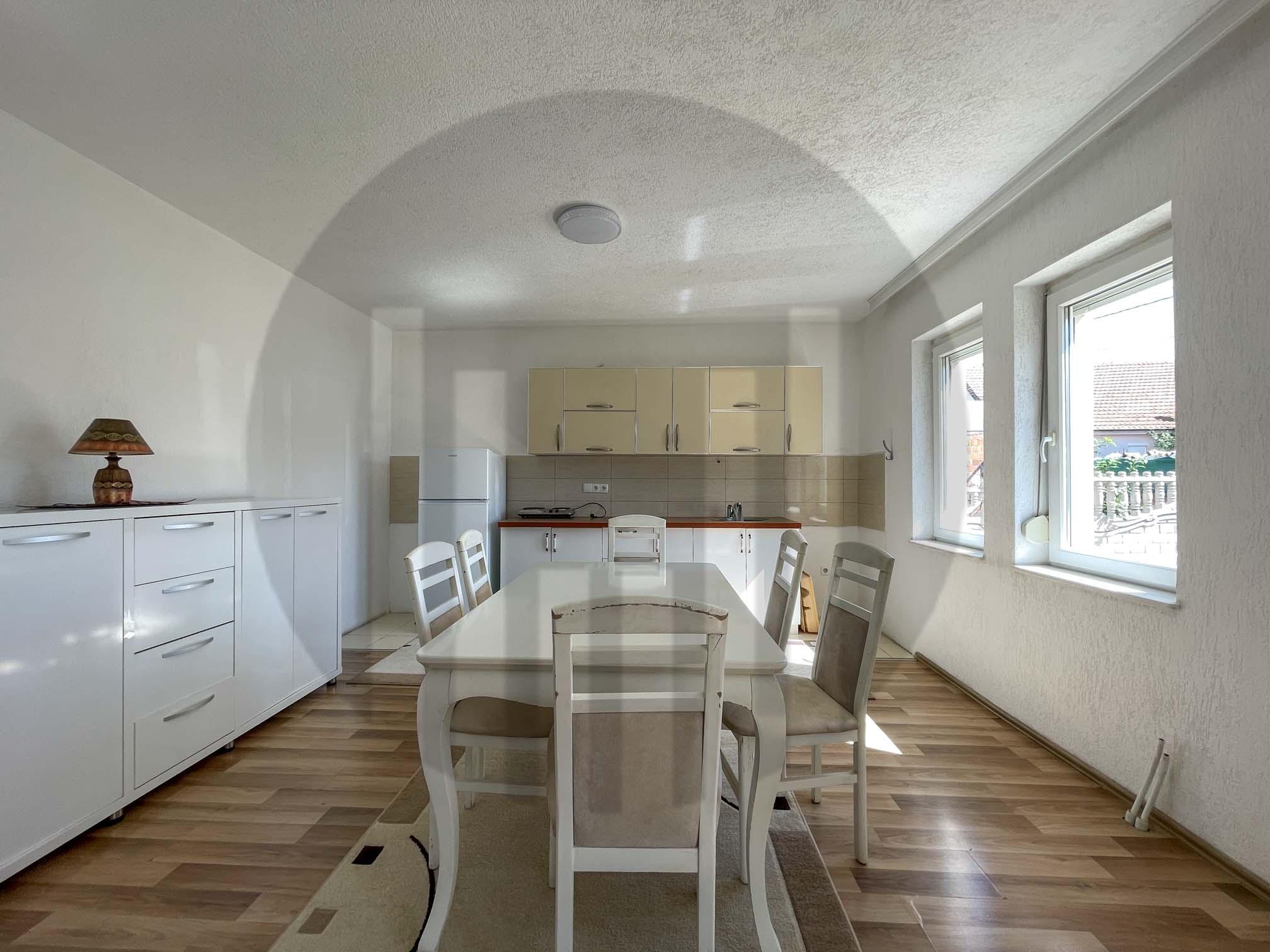 Shtëpia ndodhet në një zonë të favorshme për jetesë, me qasje të lehtë në rrugët magjistrale dhe pranë shërbimeve të rëndësishme. 350m2 sipërfaqe banimi, 5 ari truall
