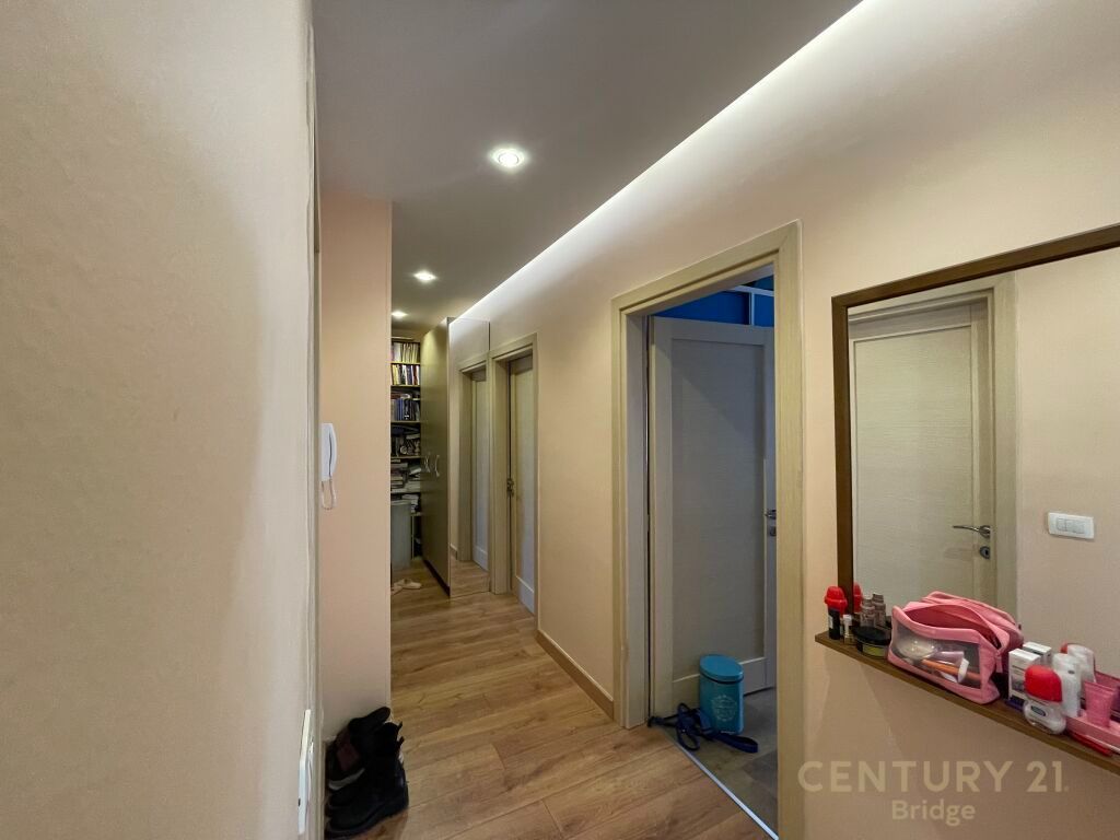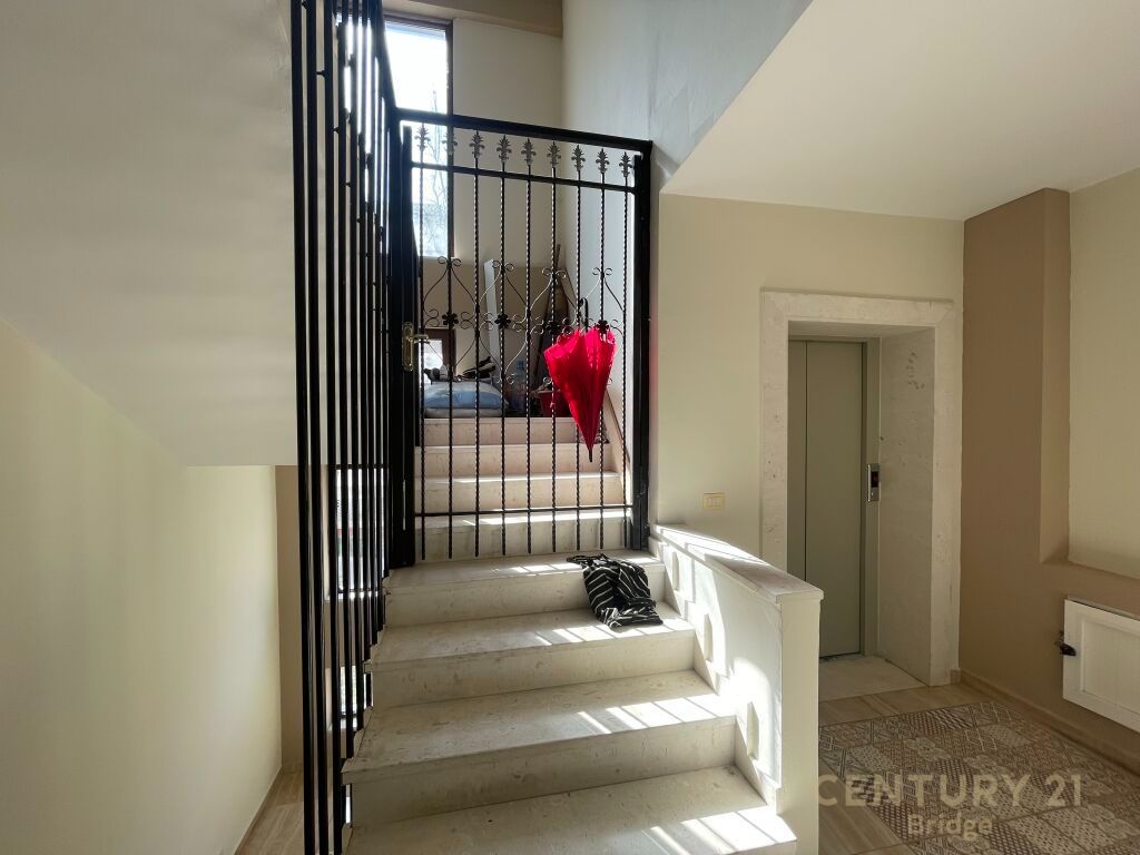 Ky apartament ndodhet në katin e pestë dhe të fundit të një ndërtese, duke ofruar një ambient të qetë dhe pamje të mrekullueshme nga rrethina. Siperfaqe totale: 120,7 m²