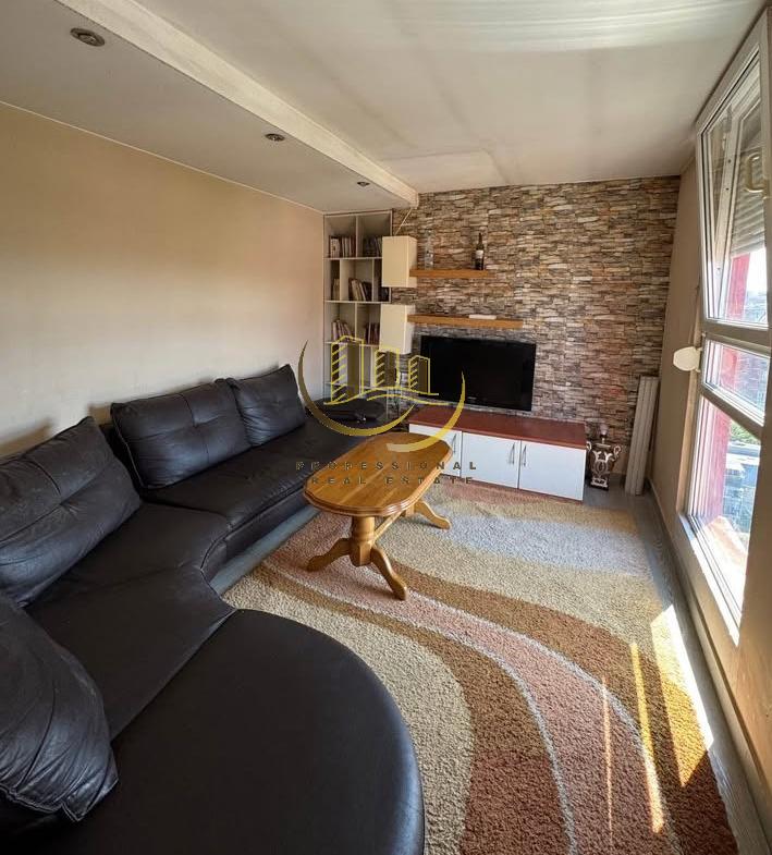 Banesë e mobiluar në tërësi me kushte shumë të mira banimi, në katin e 9-të me lift dhe sistem të ngrohjes qendrore. 80m2, 2 dhoma gjumi