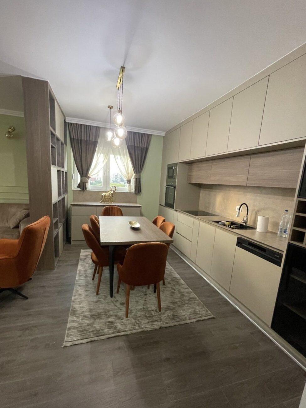 Ofrohet për qira banesë moderne dhe e mobiluar në tërësi në Prishtinë, me sipërfaqe prej 110m² dhe orientim Perendim.