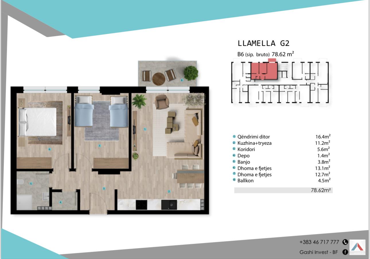 Banesa në shitje ne Lipjan, Llamella G2, B6, 78.62m2