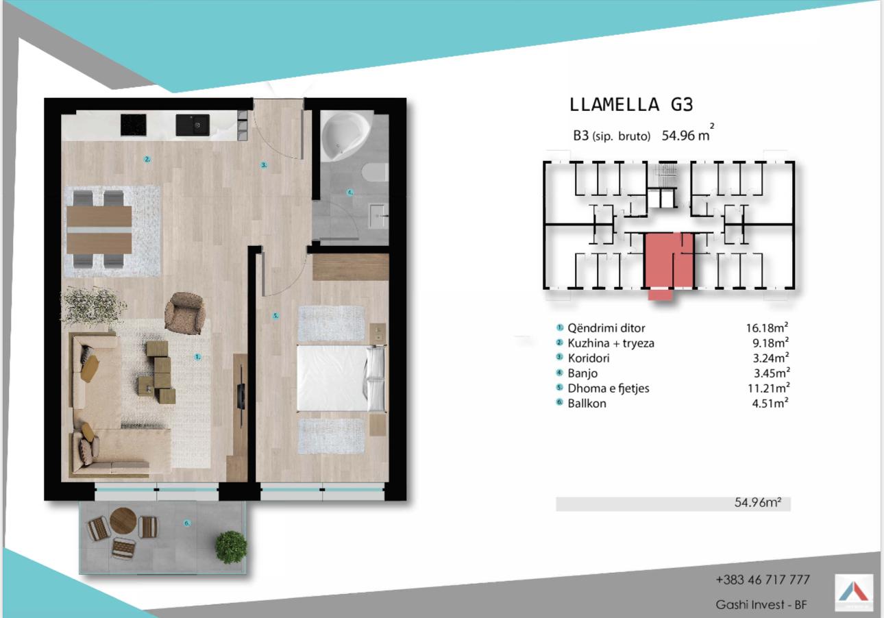 Banesa në shitje ne Lipjan, Llamella G3, B3, 54.96m2