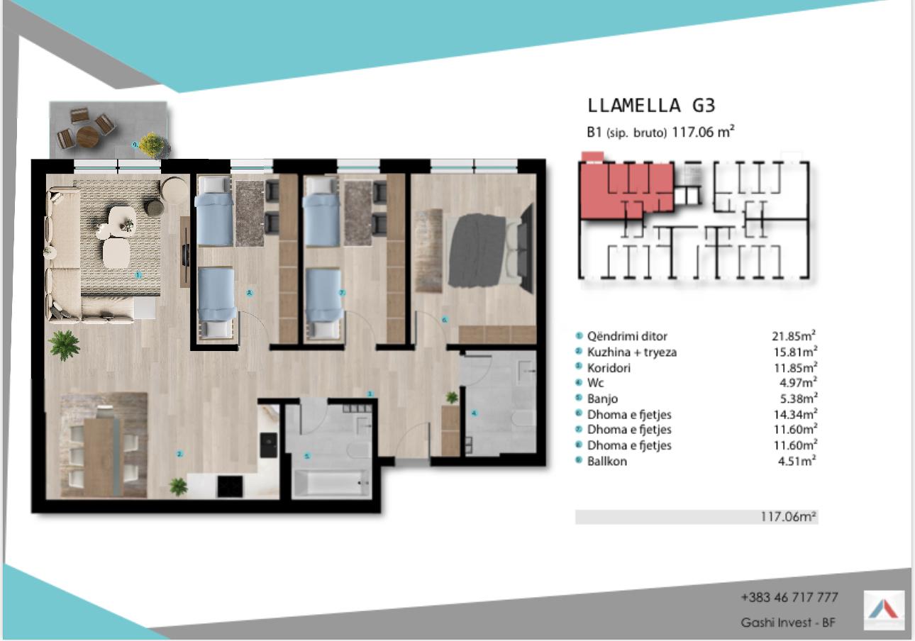 Banesa në shitje ne Lipjan, Llamella G3, B5, 117.06m2