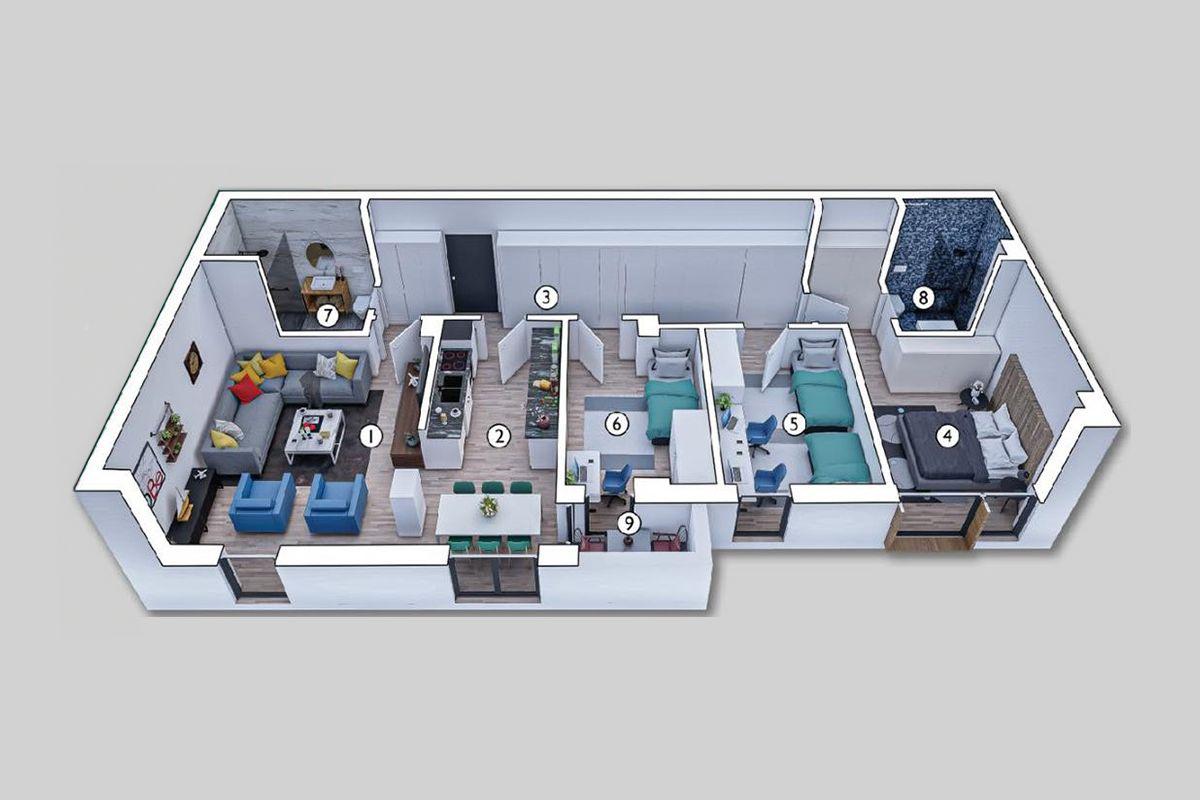 • Tri dhoma gjumi: Dizajnuar për rehati maksimale dhe privatësi.