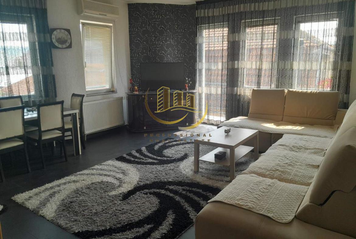 Banesë e mobiluar plotësisht me kushte shumë të mira banimi, sistem ngrohjeje qendrore dhe renditje funksionale. 85m2, 3 ballkona, 2 dhoma gjumi