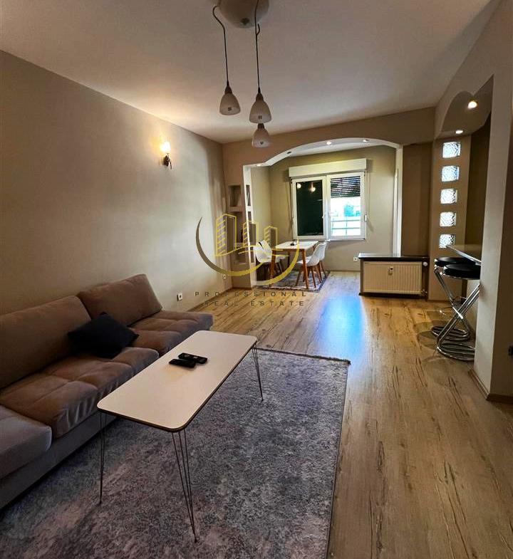 Banesë e mobiluar plotësisht me kushte shumë të mira banimi, ngrohje qendrore me termokos/klimë, në katin e 3-të, afër Postës së Madhe. 70m2, 2 dhoma gjumi