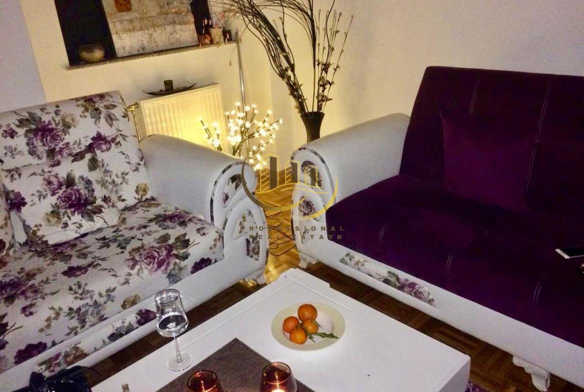 Banesë 60 m2, kati i 4-të me lift, ngrohje qendrore me termokos, kushte shumë të mira banimi, e mobiluar plotësisht.