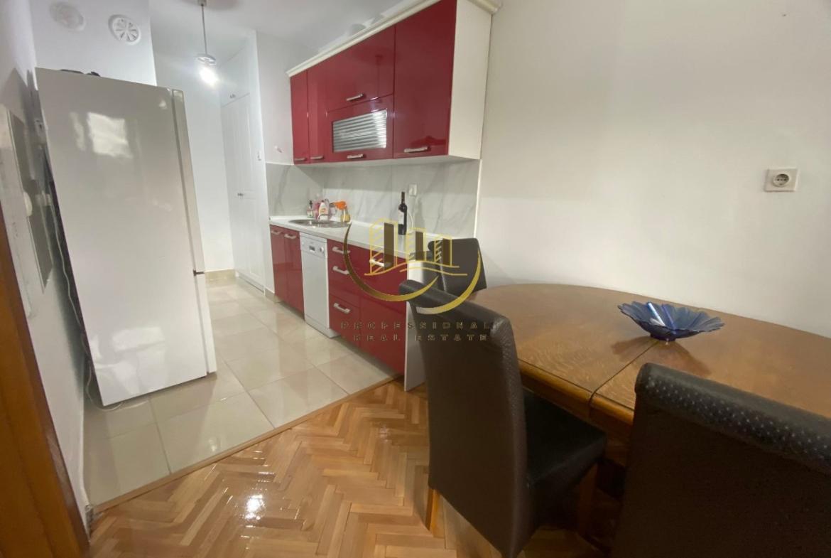 Banesë me sipërfaqe prej 65m2, kati i 9-të me lift, ngrohje qendrore me termokos dhe kushte shumë të mira banimi. Mobiluar në tërësi
