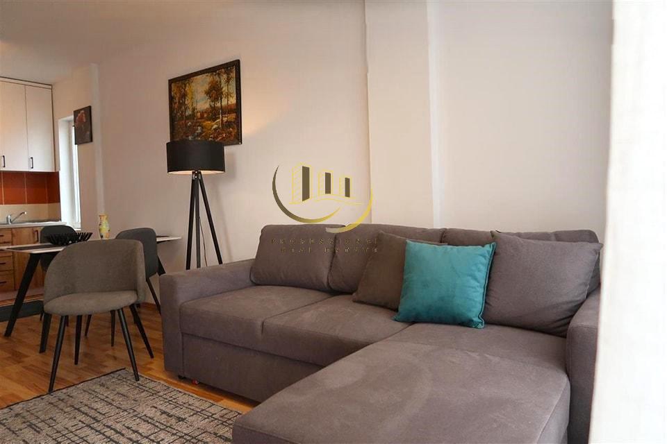 Banesë 60m2, kati 3 me lift, ngrohje qendrore me rrymë/klimë, kushte shumë të mira banimi, e mobiluar.
