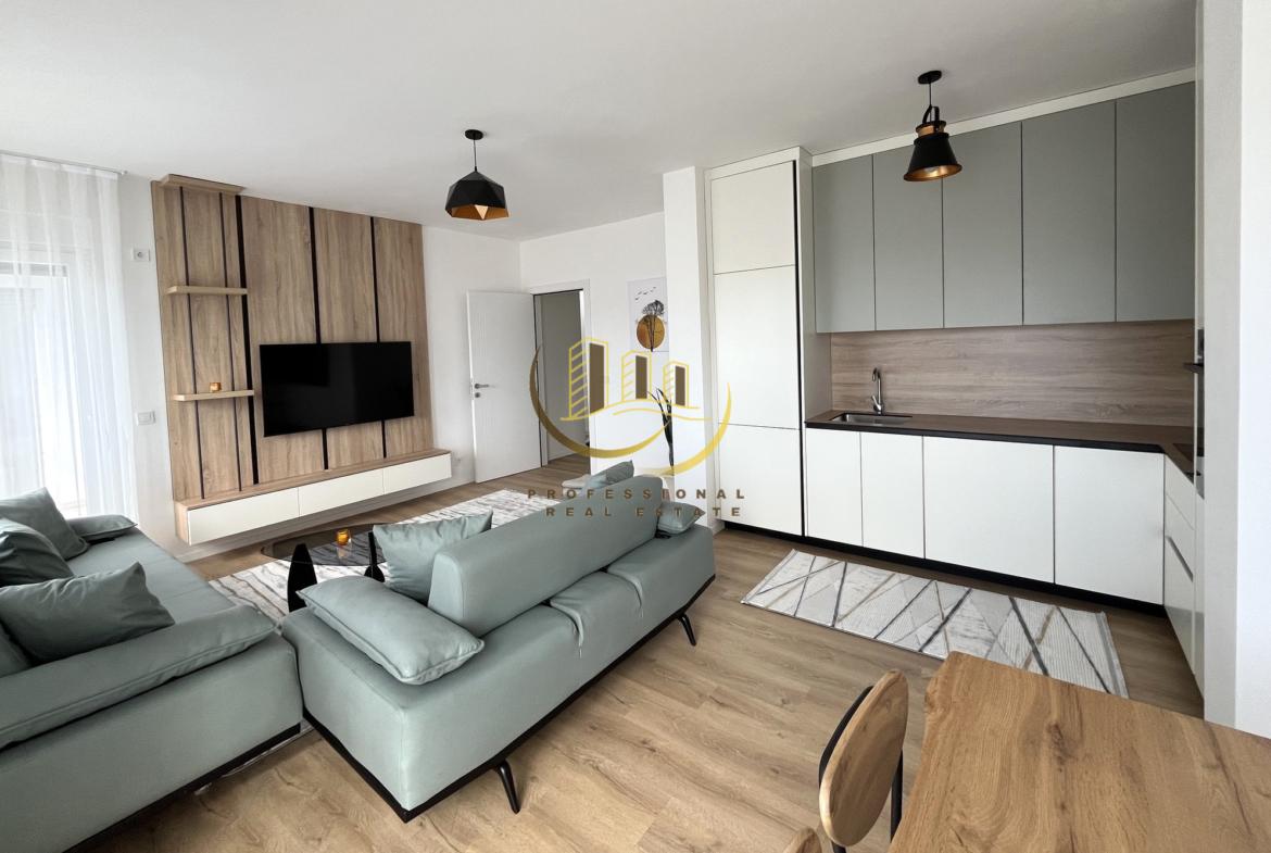 Banesë moderne me kushte shumë të mira banimi, e mobiluar dhe e pa banuar më parë. 85 m2, kati 5, ngrohje qendrore me rrymë