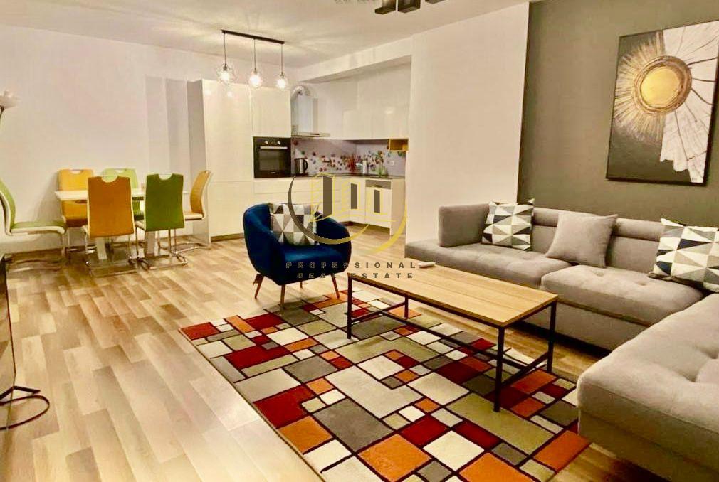 Banesë me sipërfaqe 93m2, me sistem të ngrohjes qendrore me termokos/klimë dhe kushte shumë të mira banimi, e mobiluar në tërësi.