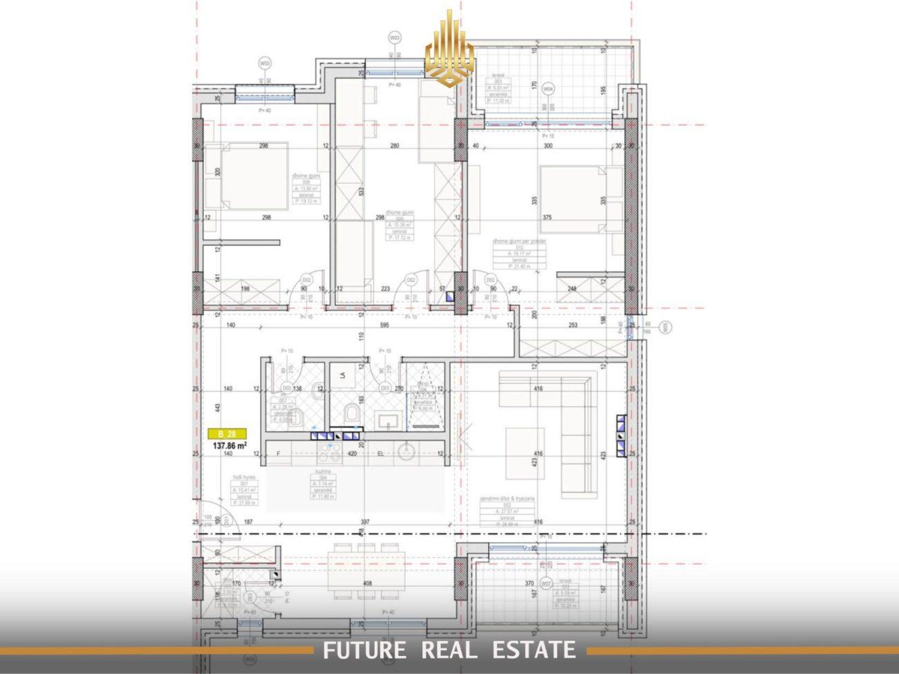 Ofrohet për shitje banesë me sipërfaqe prej 137.86 m2 në Prishtinë, në lagjen Prishtina e re, rruga Holger Petersen.