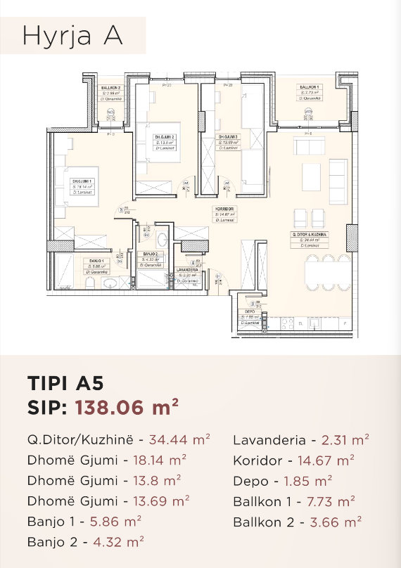 • Dizajn modern dhe planimetri funksionale