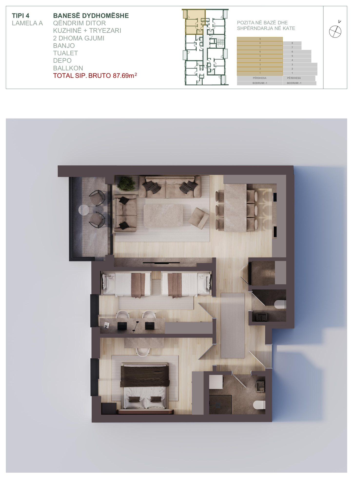 BESOR APARTEMENTS, Banese ne shitje Tip 4, Lamela B, 86.45m2