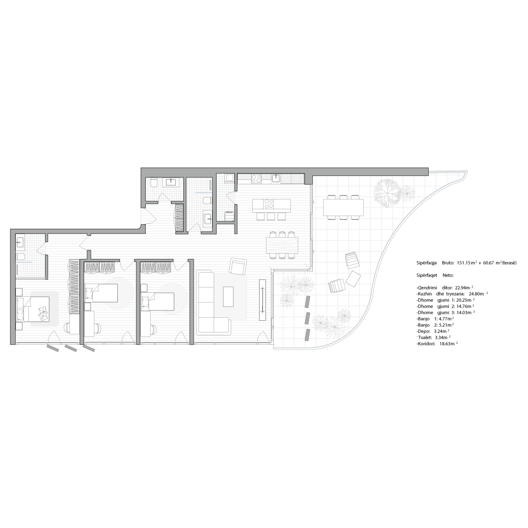 Çdo apartament është projektuar me kujdes për të ofruar rehati, funksionalitet dhe standard të lartë jetese.