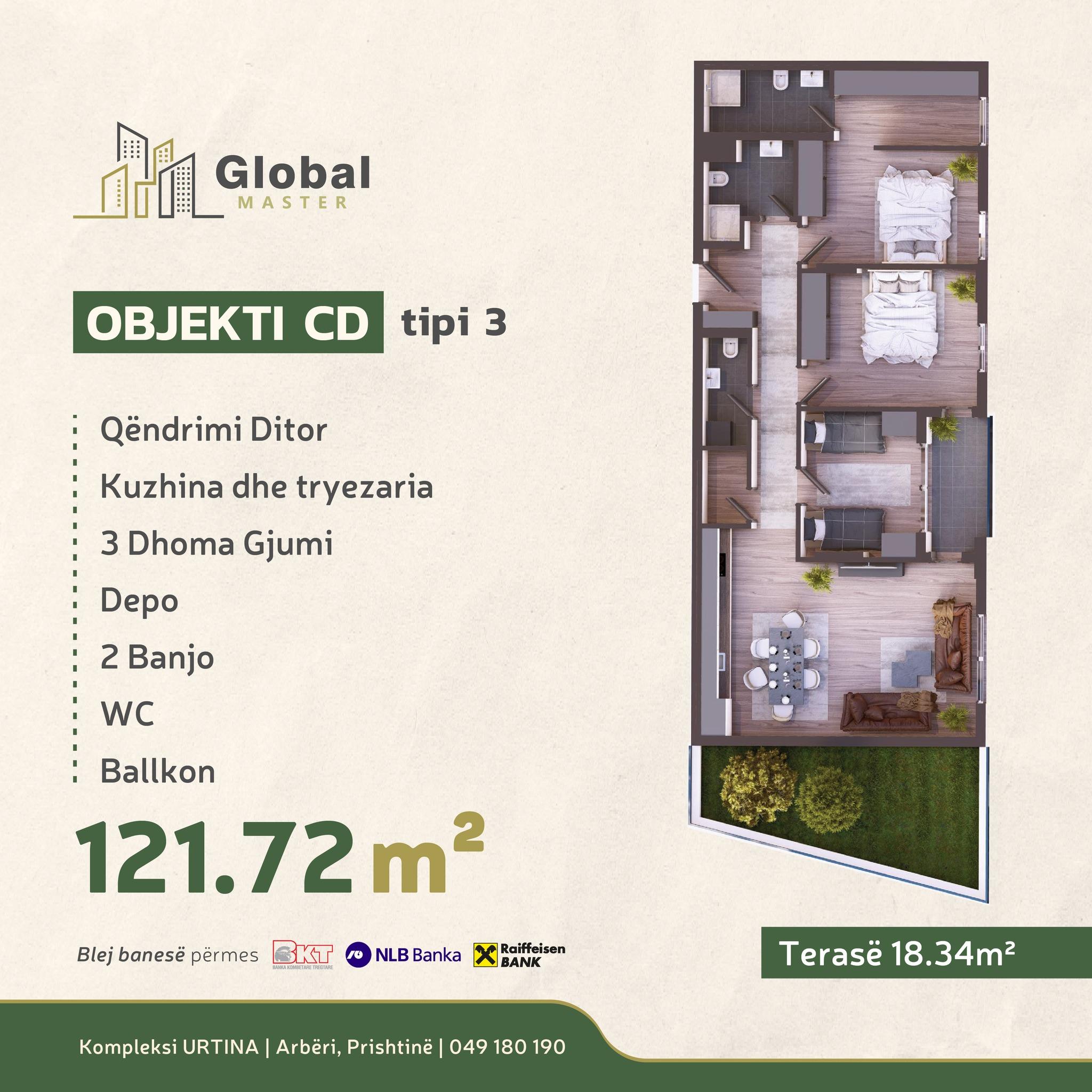 KOMPLEKSI URTINA, OBJEKTI CD Tip 3, 121.72m2 + Terasë 18.34m2