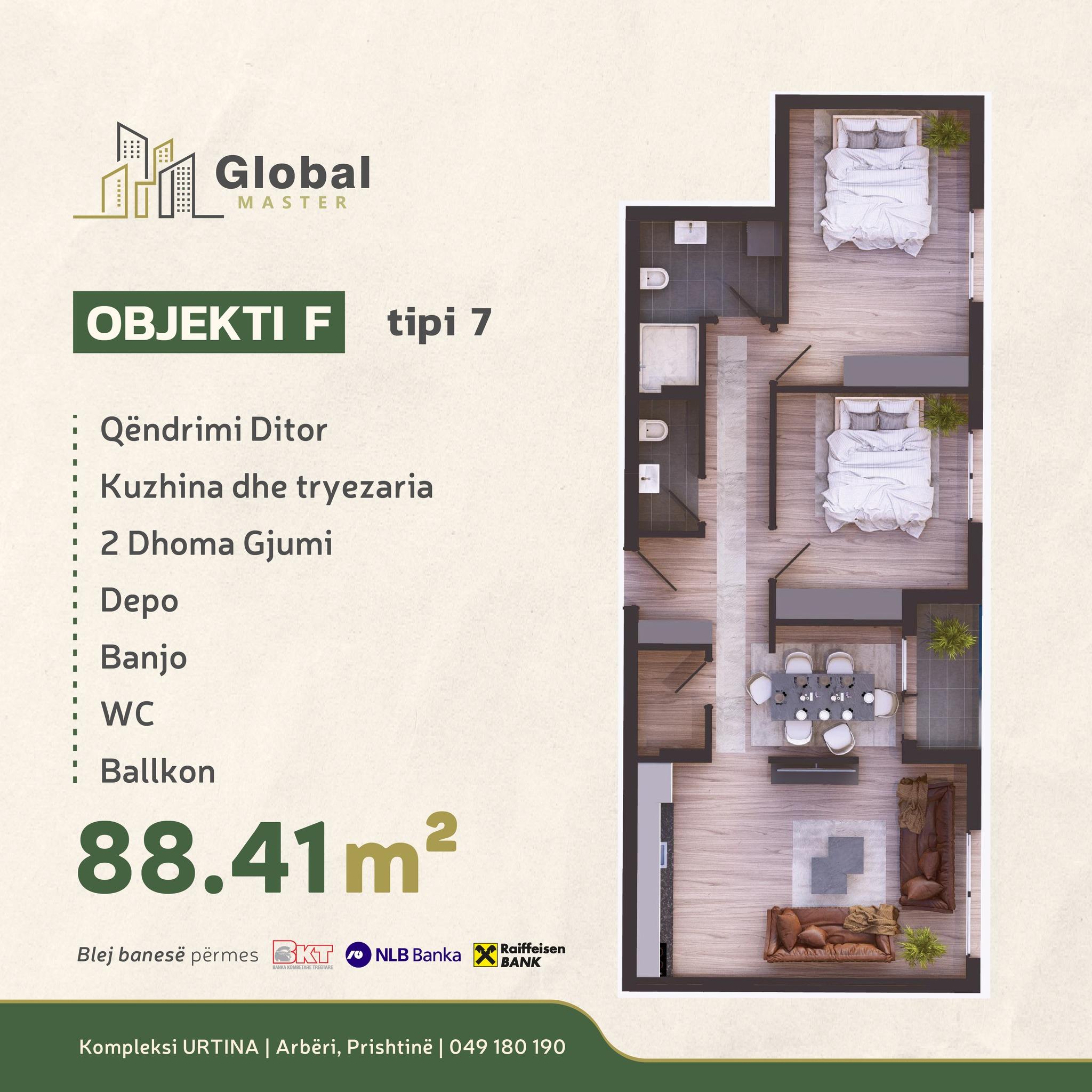 KOMPLEKSI URTINA, OBJEKTI F Tip 7, 88.41m2