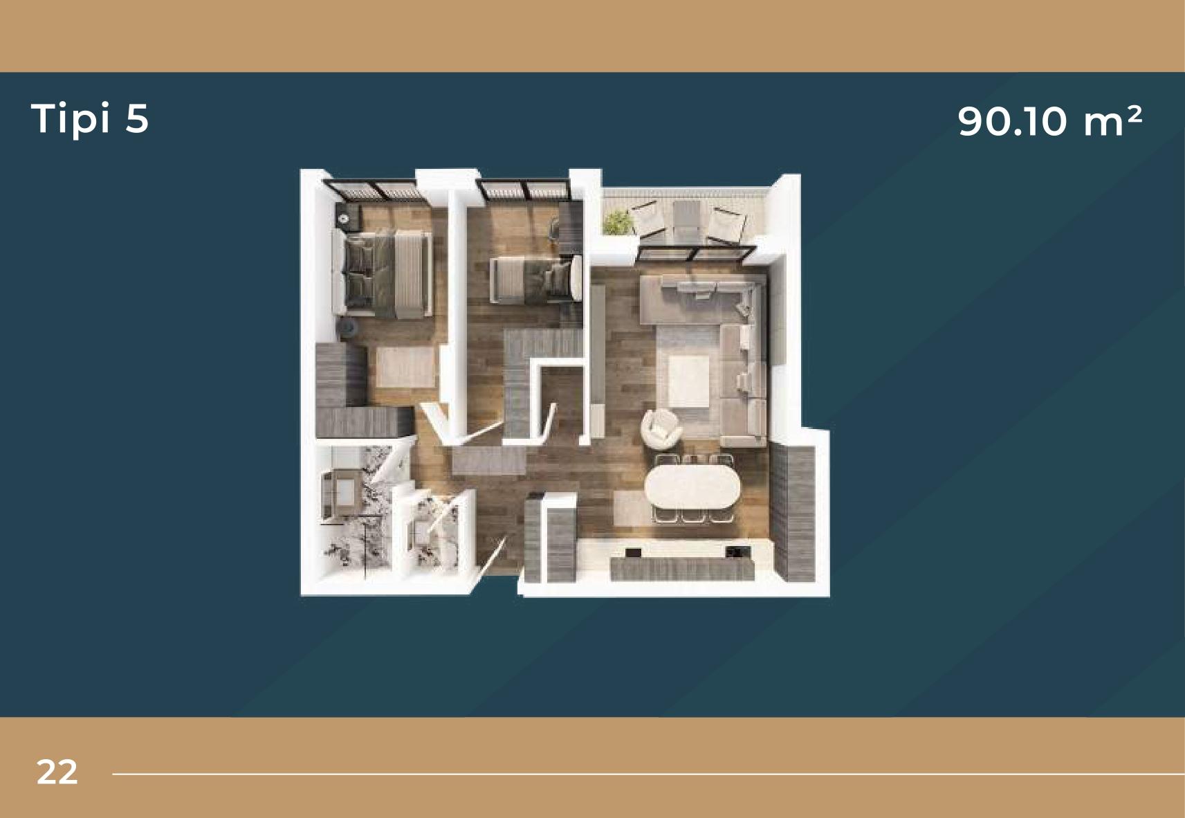 KORAL TOWER II, Banesë ne shitje TIP 5, 90.10m2