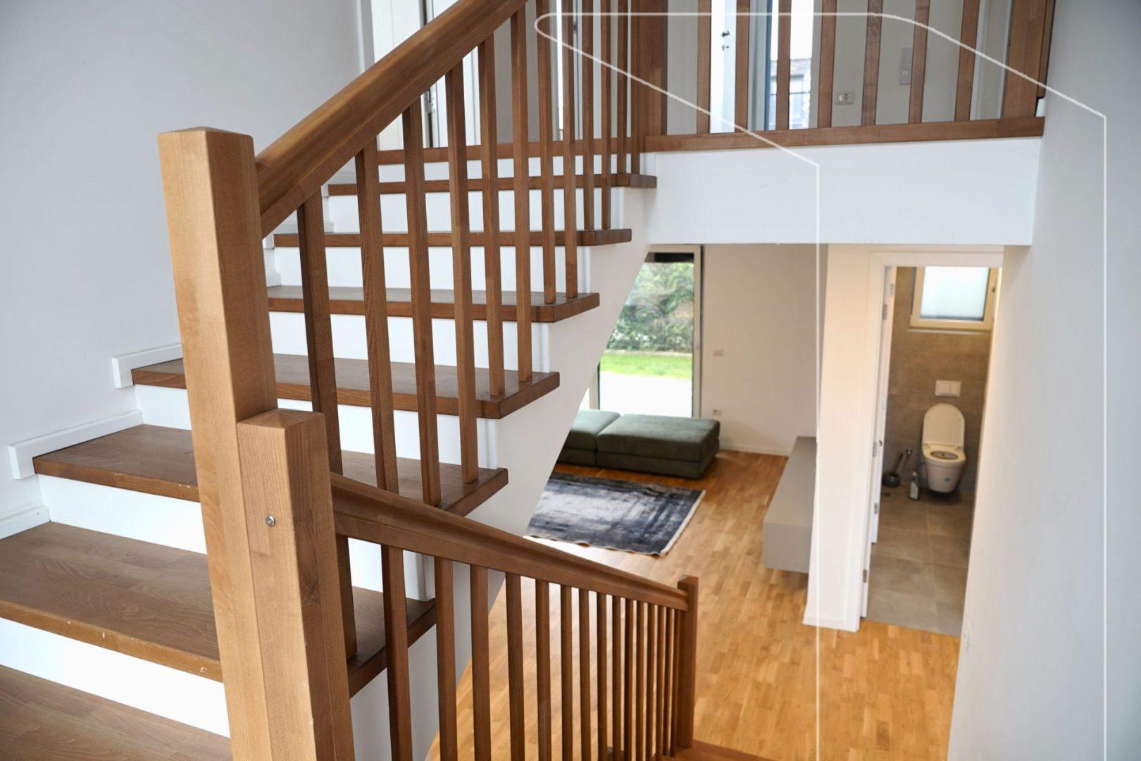 - Kati përdhesë: Sallon i ndritshëm me dalje në oborr, kuzhinë e hapur me tryezari, tualet për mysafirë, dhomë teknike, garazh
